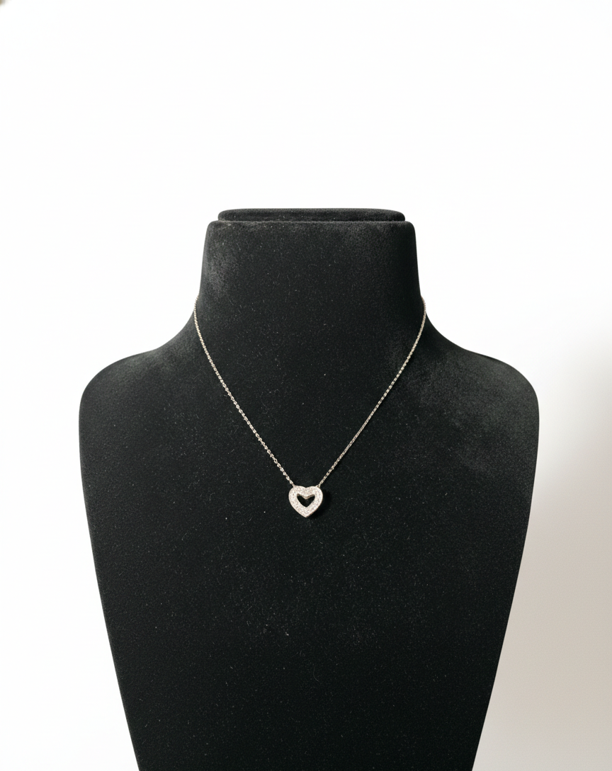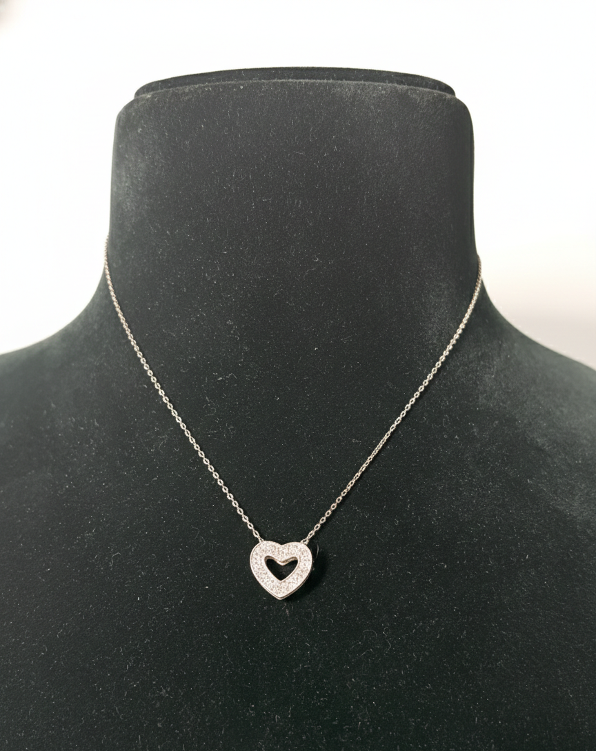 Celebrate love and elegance with this sterling silver heart pendant necklace, designed with a beautifully shaped heart charm accented with fine crystal detailing. The pendant offers a soft sparkle and refined finish, suspended from a slim silver chain that sits gracefully on the neckline.
